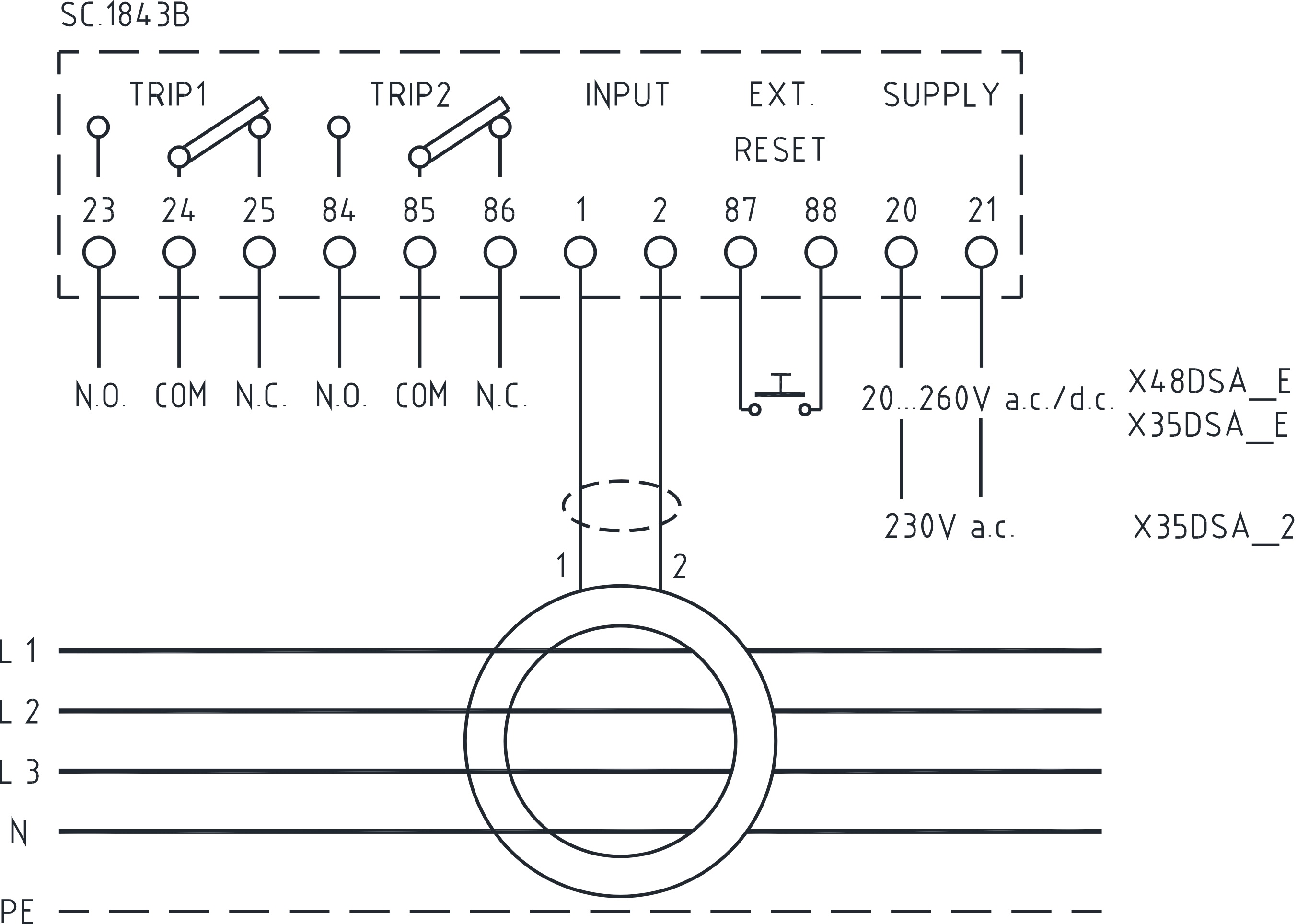 La nuova gamma di relè differenziali di tipo A a toroide separato offre massima sicurezza e protezione affidabile secondo la norma EN 60947-2 Allegato M. Corrente d'intervento IΔn regolabile 30mA...30A. Impostazioni tramite dip-switch e trimmer protetti dal frontale sigillabile. Doppio relè di TRIP. Connessione tramite toroidi esterni a nucleo chiuso o apribile della serie TDC-TDA